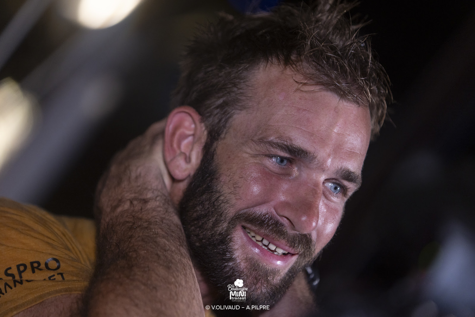Julien passe la ligne au coucher de soleil, en 4ème après 14j 06h 46min 38s de course. « Ça fait trois fois que je viens à Saint-François pour la Mini Transat, et ça fait quelque chose. Je suis trop heureux d’être là. Pendant 15j, on est passés par toutes les émotions, et ici, à l’arrivée, il n’y a que des sourires. » Julien s’est régalé et on ressent sa forte complicité avec BigOrNo qu’il connait par coeur. Étant donné l’option choisie en début de course avec très peu de vent, Julien se rend vite compte qu’il ne sera pas sur le podium. Il met le sportif de côté et prend du temps pour lui en symbiose avec son bateau. Il remonte quand même la flotte et s’empare de la 4ème place, bien méritée.